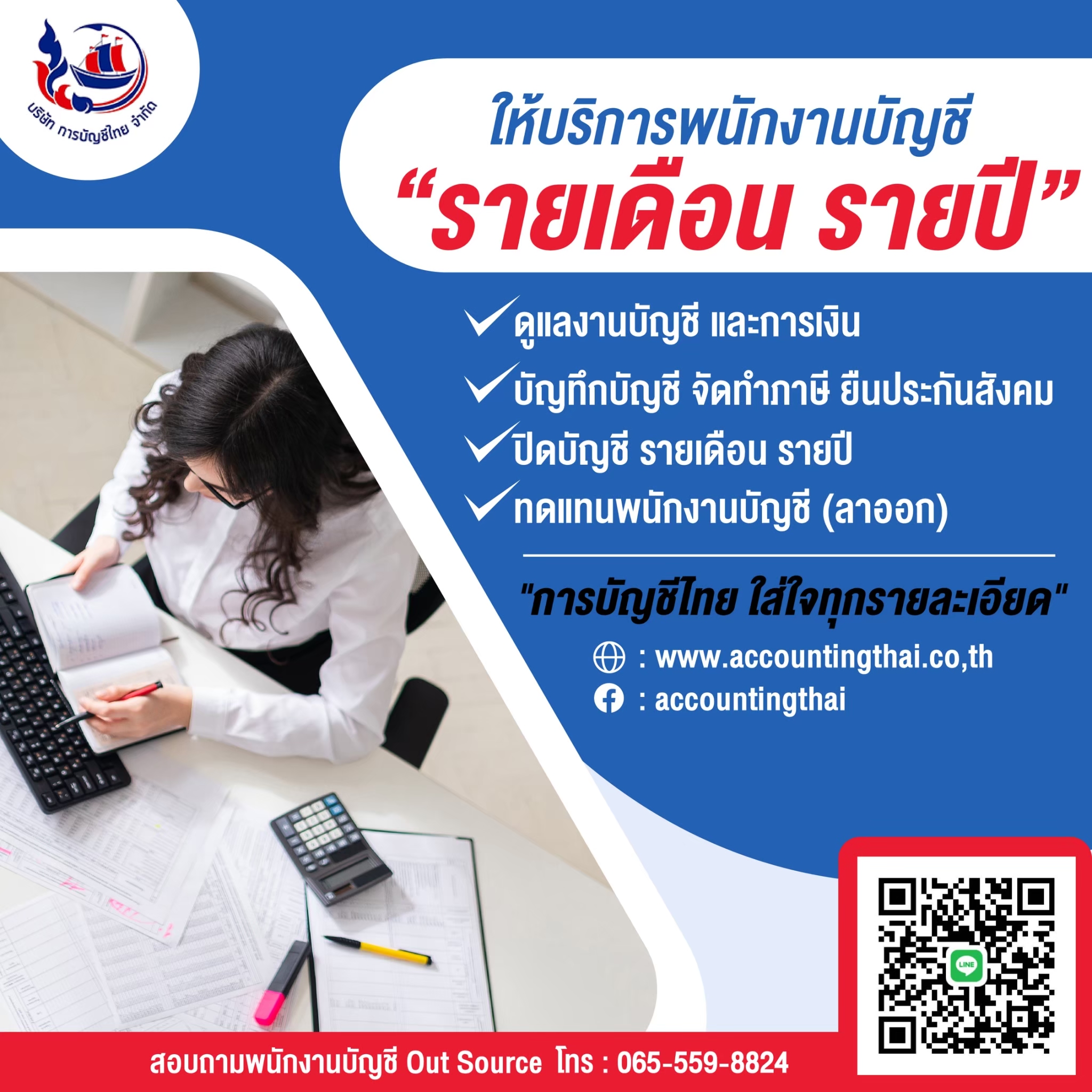 ให้บริการพนักงานบัญชีและการเงิน Outsource สำหรับการปฏิบัติงานด้านบัญชีและภาษีในองค์กรธุรกิจของท่าน กรณีเร่งด่วน พนักงานบัญชีขาด หาคนทำได้ยาก โดยเรามีนักบัญชีที่มีความรู้และประสบการณ์ในการให้คำแนะนำที่ได้รับการฝึกฝนด้านวิชาชีพบัญชีมาเป็นอย่างดี พร้อมที่จะให้บริการลูกค้าทุกราย โดยช่วยแก้ไขปัญหาได้เป็นอย่างดี ซึ่งราคาให้บริการจะช่วยประหยัดต้นทุนด้านพนักงานแก่ธุรกิจท่าน